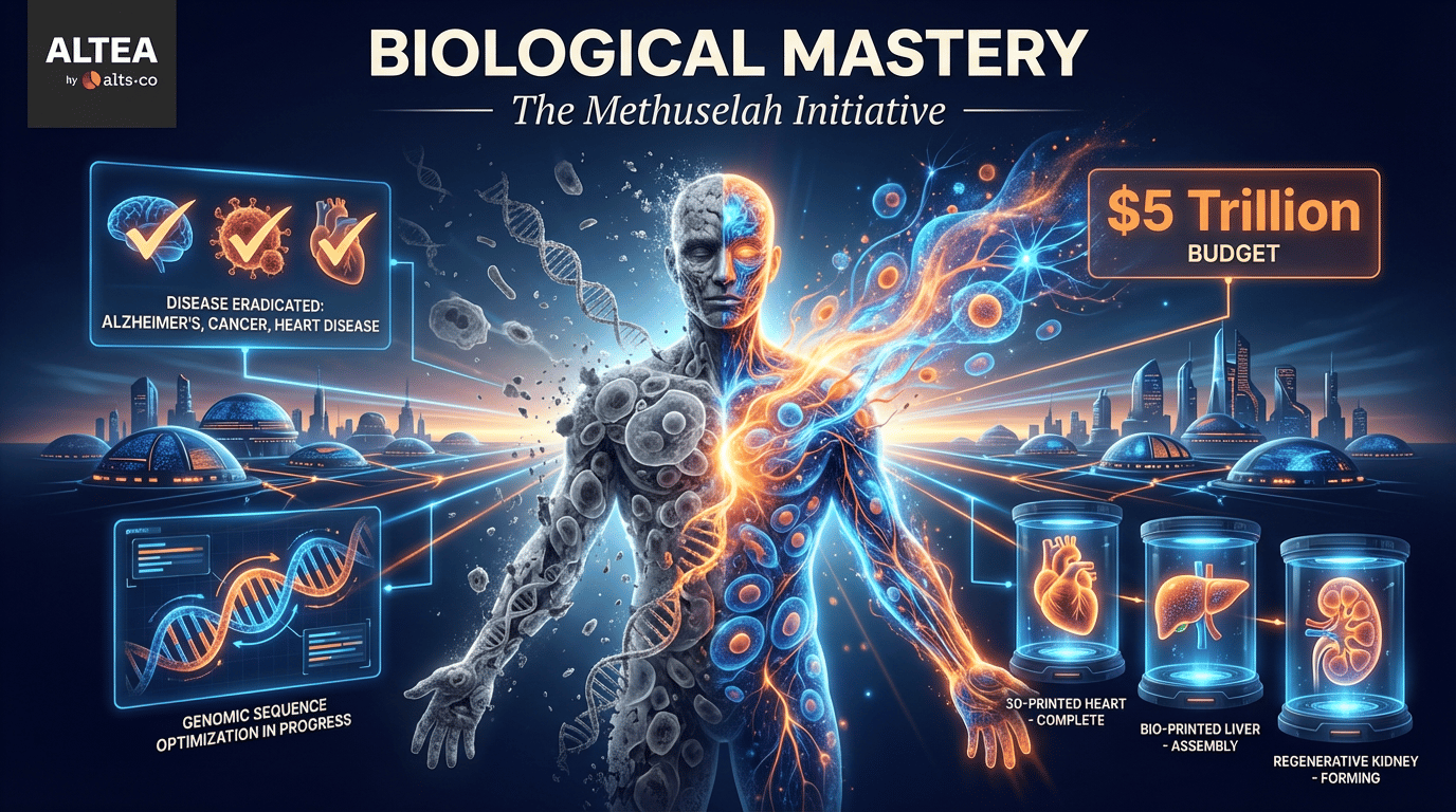 Universal Bio-Scanning: Every citizen receives a Genomic Sequence and annual MRI/blood biopsy to catch disease at Stage 0.