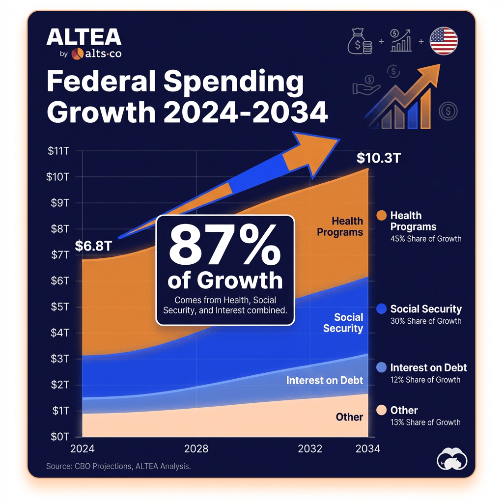 By 2034, Social Security will hit $2.5 trillion annually. Federal health programs hit $2.8 trillion.