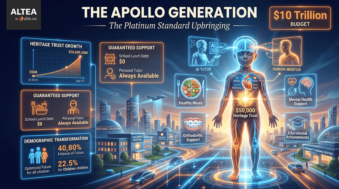 The “Heritage” Trust: The government deposits $50,000 into a compounding investment account for every child at birth, with the funds unlocked at age 25. (Cost: ~$180B/year, a fraction of the budget).