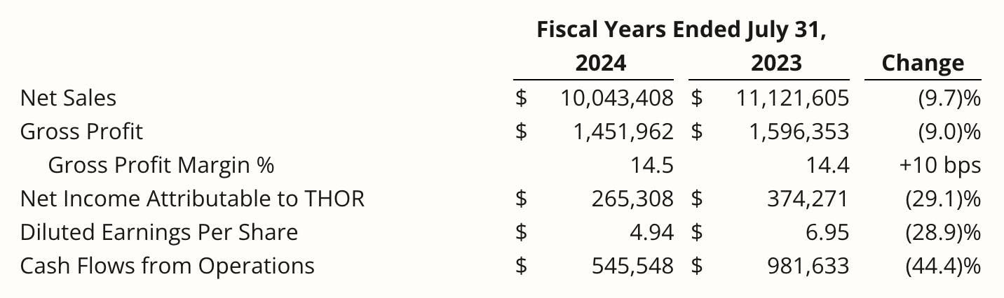 "Until a strong market does return, we will continue to be disciplined with production and will continue to work with our independent dealers to maintain a steady, albeit depressed, retail pull-through." - Thor CEO Bob Martin.